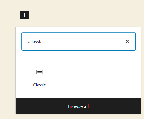 您也可以在一个新的段落区块中输入 /classic 并按回车键来快速添加。