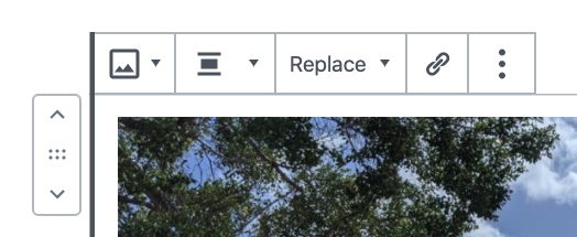 除了左侧的“移动器”和“拖放手柄”之外,图片区块的区块工具栏还显示五个按钮