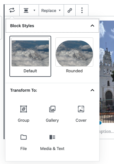 图片区块有许多额外选项,可以通过点击工具栏右侧的三点菜单来访问。这些选项对所有区块都是通用的,您可以在此处了解更多信息。