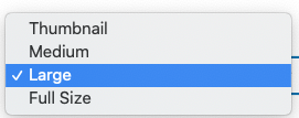图片尺寸设置允许您选择缩略图、中、大和完整尺寸。