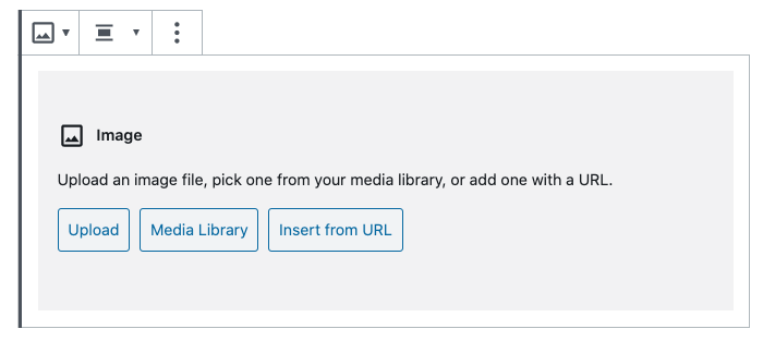 添加区块后,您将看到上传图片、从媒体库选择图片或从URL插入图片的选项。