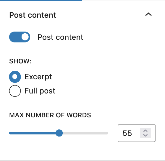 您可以选择显示完整的文章内容或文章摘要,并可选择修改摘要的字数。