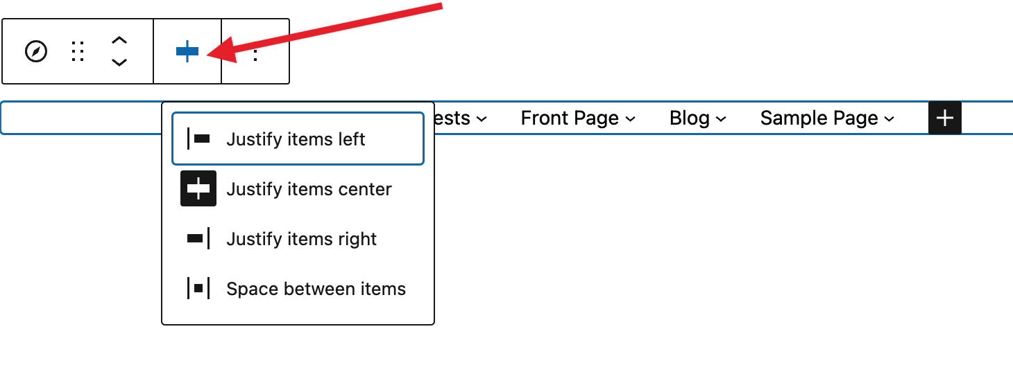 点击块工具栏中的更改项目对齐方式按钮以显示对齐方式下拉菜单。您可以将块文本左对齐、居中对齐、右对齐或在项目之间留出空格。