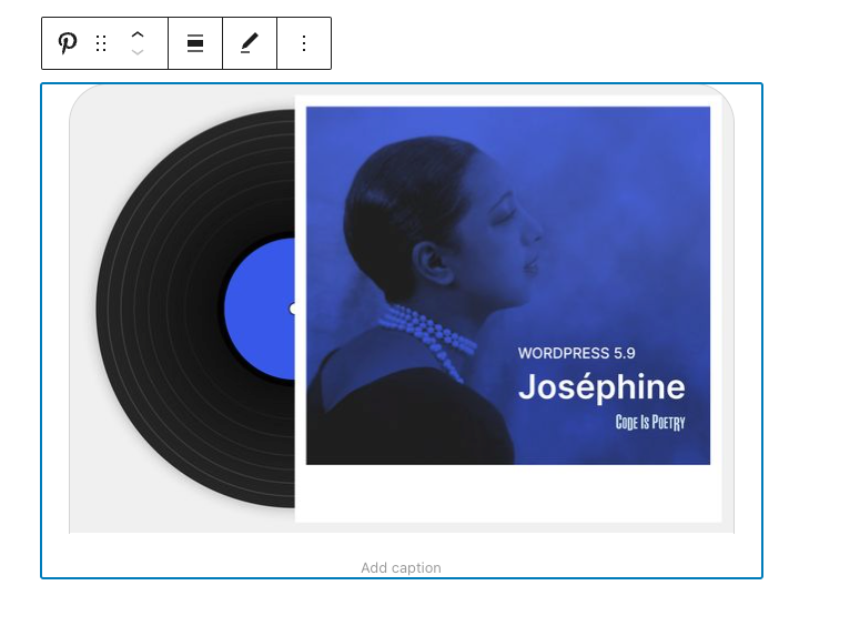 除了“移动器”和“拖放手柄”外,Pinterest 嵌入块的块工具栏还显示四个按钮。