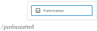 您也可以在一个空的段落块中输入“/preformatted”并按下回车键来快速创建一个。