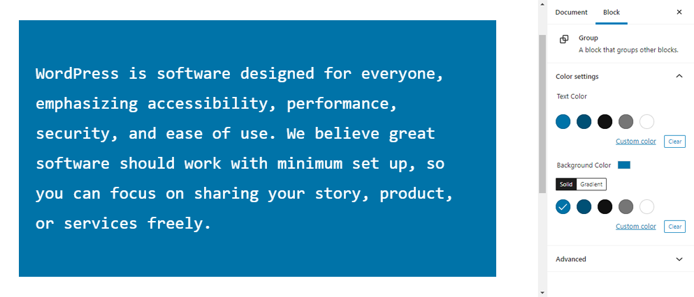 您可以自定义标题块的文本颜色和背景颜色。可用的颜色选项将根据主题而异。