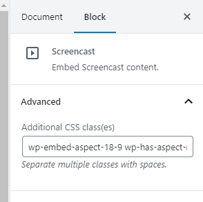 - 将 Screencast 嵌入区块添加到您的文章或页面