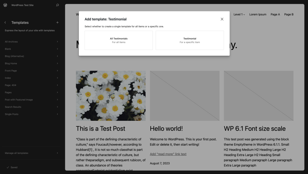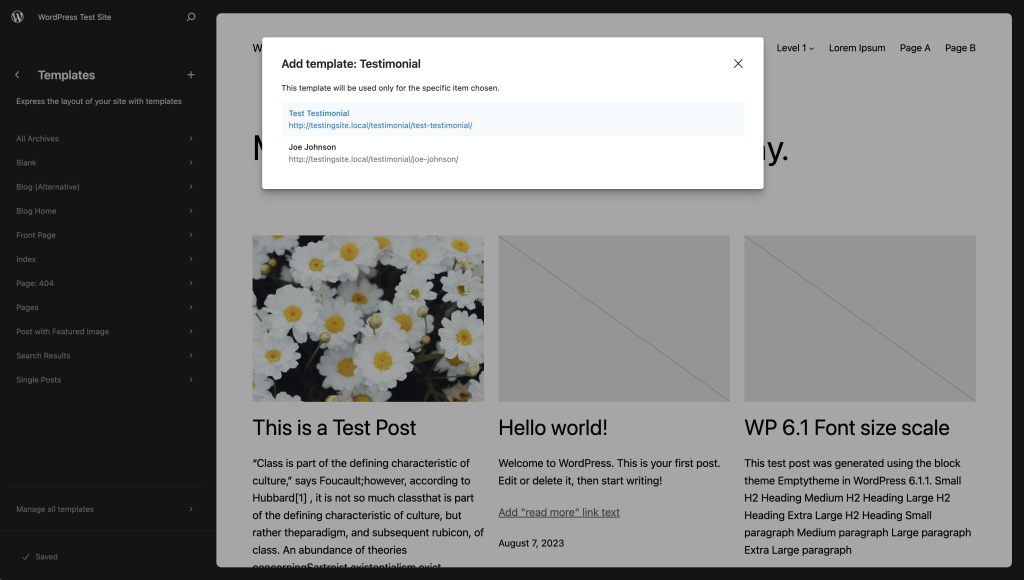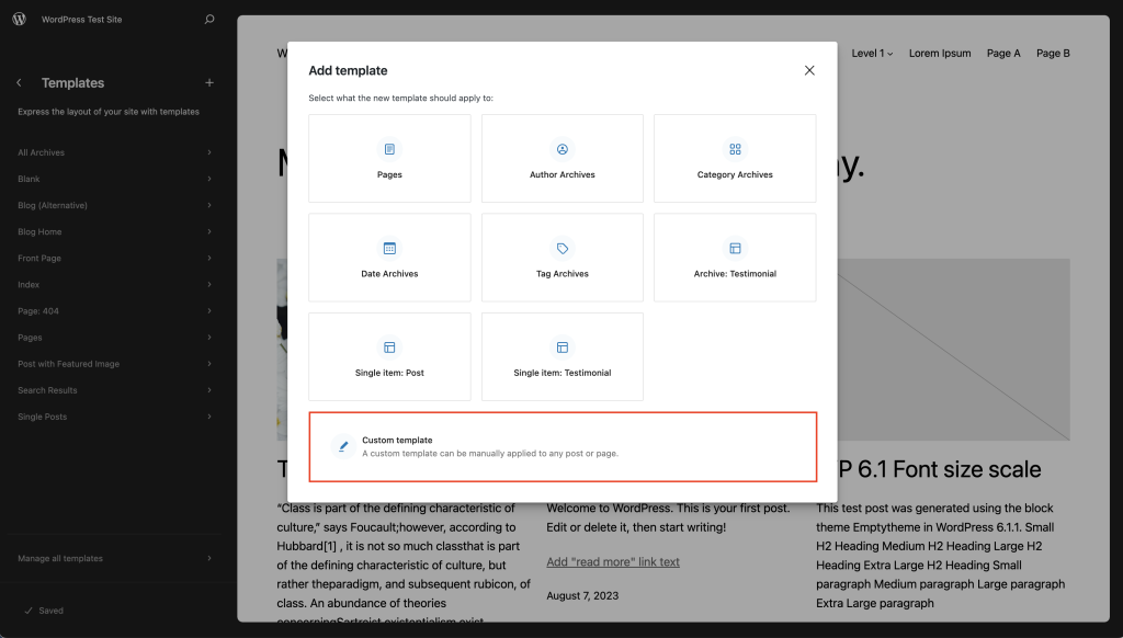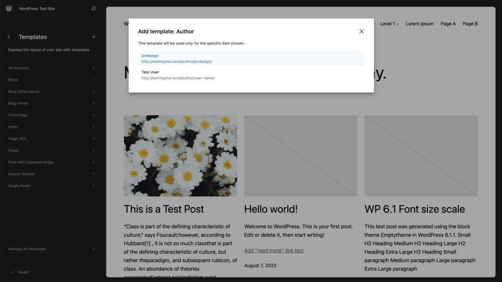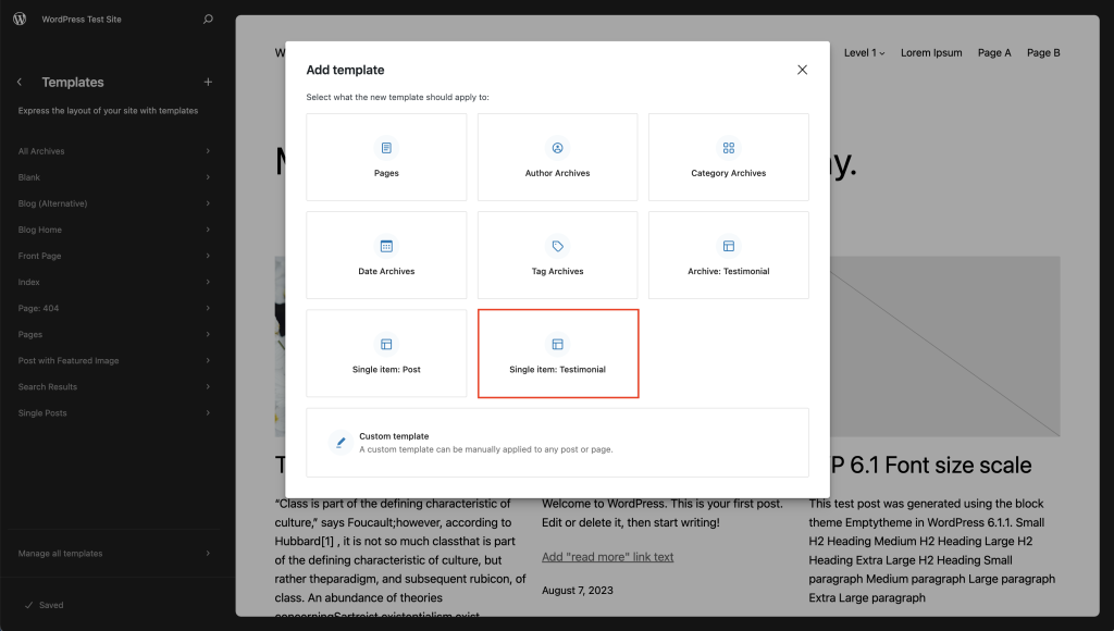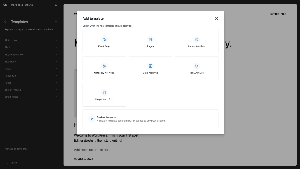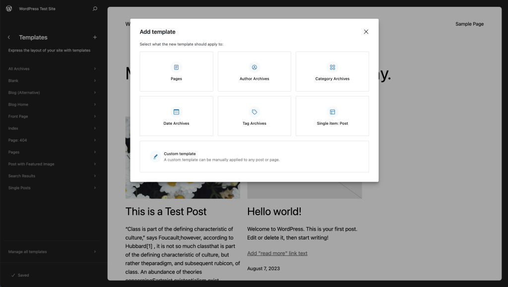 当您从模板编辑器中提供的选项列表中添加新模板时,它们会自动分配到各自的页面、文章或文章类型。例如:作者模板会根据作者自动分配给文章。当您创建新的自定义模板时,它不会分配给任何特定内容,直到您将模板分配给文章或页面。