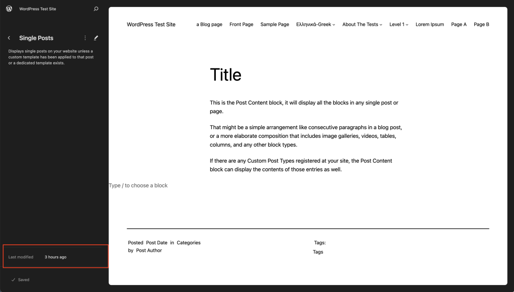当您对模板进行更改时,编辑器会更新使用该模板的所有页面/文章上的区块。这些更改将优先于您的主题捆绑模板文件。
